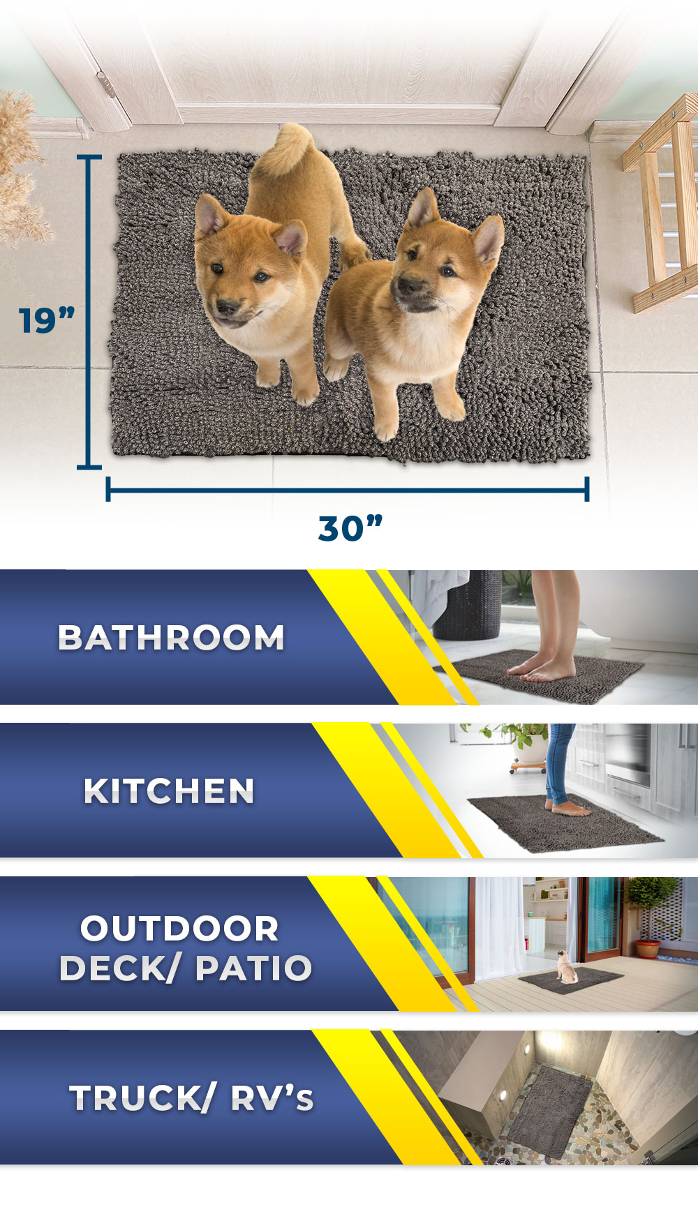 Saw an ad for this and decided to try it out on a whim. Really happy i did. It works great by the door to wipe feet and dirty labradoodle paws on. I really like to use it in the bathroom though. Because of the super non-slip back, i feel pretty good about my kids getting out of the shower safely, and since it’s so absorbent, I don’t have to dry the mini pool they used to leave on the floor in the bathroom before i got the mat.