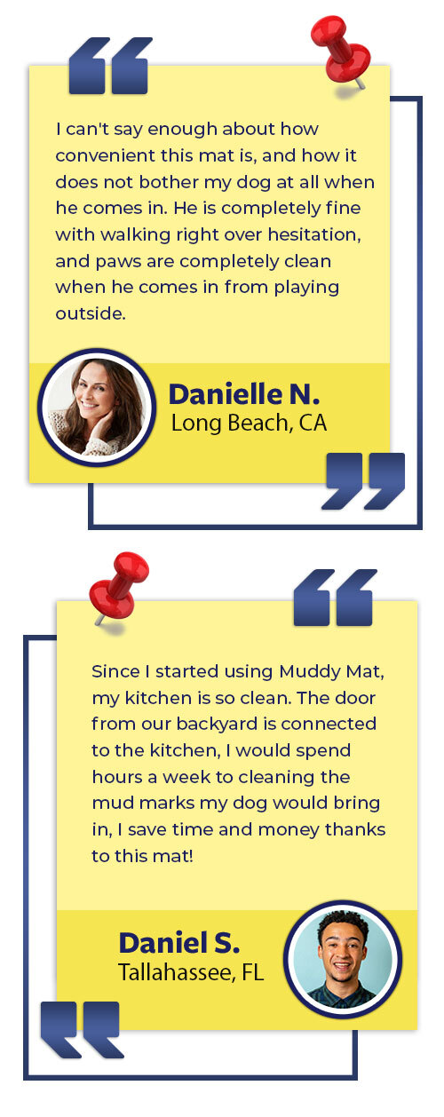 This mat is the best thing since sliced bread. We used to have to swiffer our hardwood floors daily because the dogs would always bring in dirt and mud from the backyard. I used to be so paranoid about my floors getting filthy. Now I can relax and not clean my floors so often. Just one less thing to worry about. Great product!